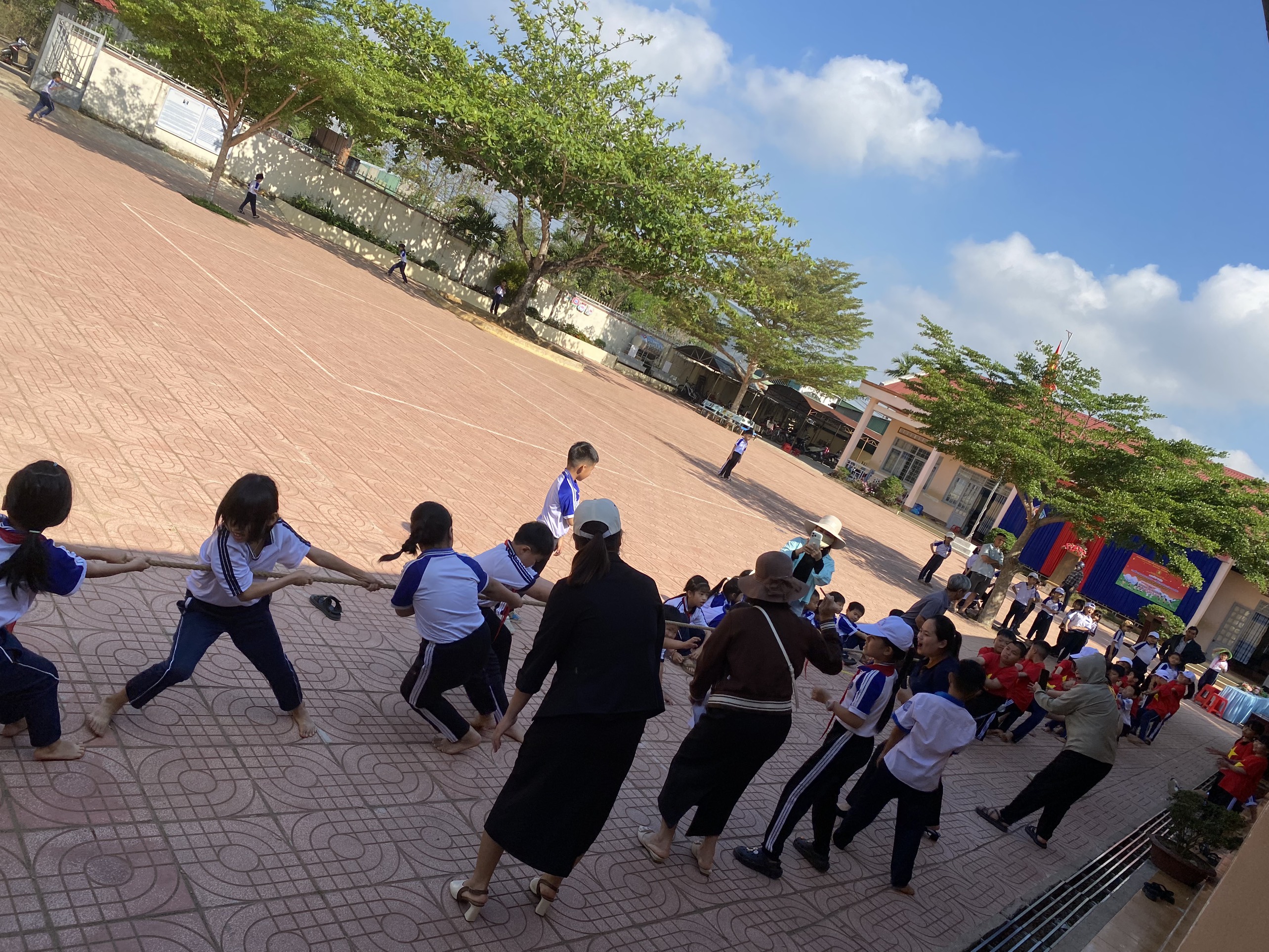 Tiếp theo là các trò chơi dân gian vô cùng hấp dẫn thu hút đông đảo các bạn học sinh tham gia rất sôi nổi, dưới sự cổ vũ nhiệt tình của các bậc p/h, các thầy cô trong trường.