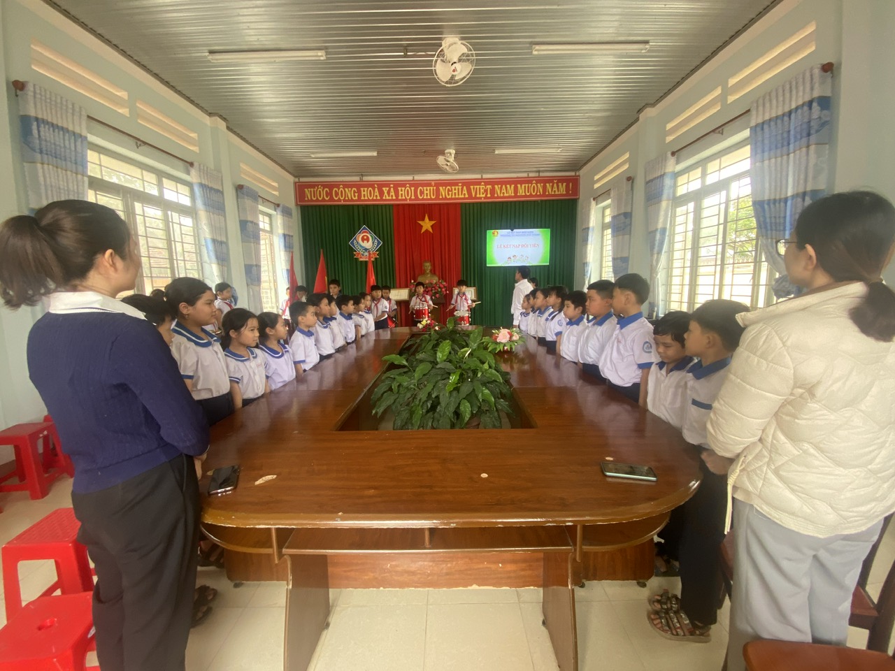 Thực hiện Chương trình công tác Đội và phong trào thiếu nhi năm học 2025-2026, nhân dịp kỷ niệm 85 năm Ngày thành lập Đội TNTP Hồ Chí Minh (15/5/1941-15/5/2026). Được sự nhất trí của Ban giám hiệu nhà trường, sáng thứ Hai ngày 24 tháng 12 năm 2025 Liên đội trường Tiểu học thị Nguyễn Chí Thanh đã long trọng tổ chức lễ kết nạp Đội viên cho 19 em Nhi đồng khối lớp 3 có nguyện vọng đứng trong hàng ngũ của Đội.